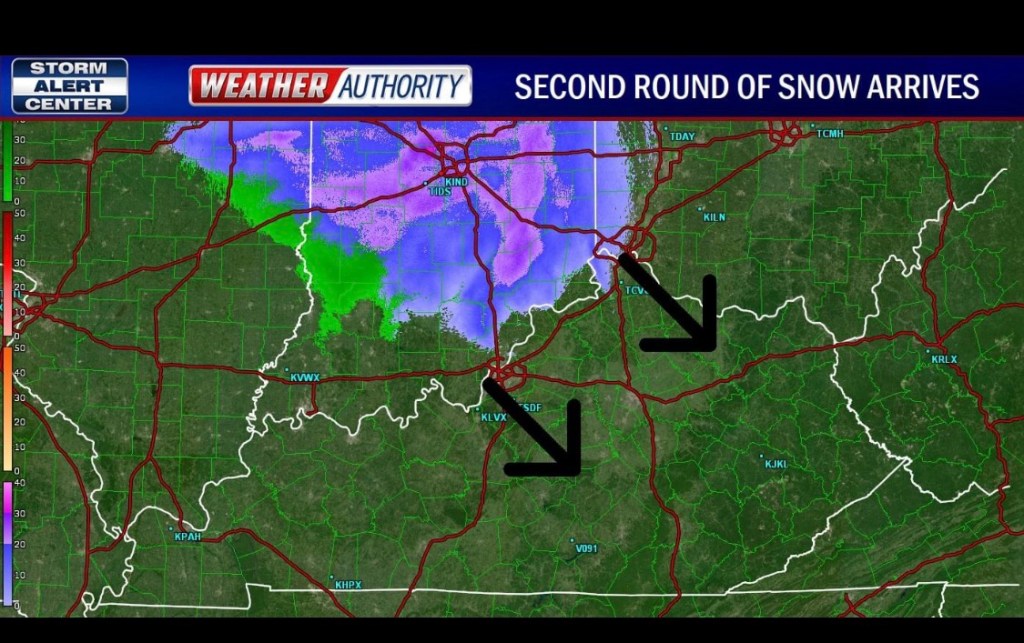 Temperatures will fall as the sun sets and most precipitation that falls will be in the form of snow. Snowfall will be the greatest in eastern Kentucky, east of Interstate 75 overnight with some places seeing 1-3 inches. In south central Kentucky, don’t anticipate much accumulation.