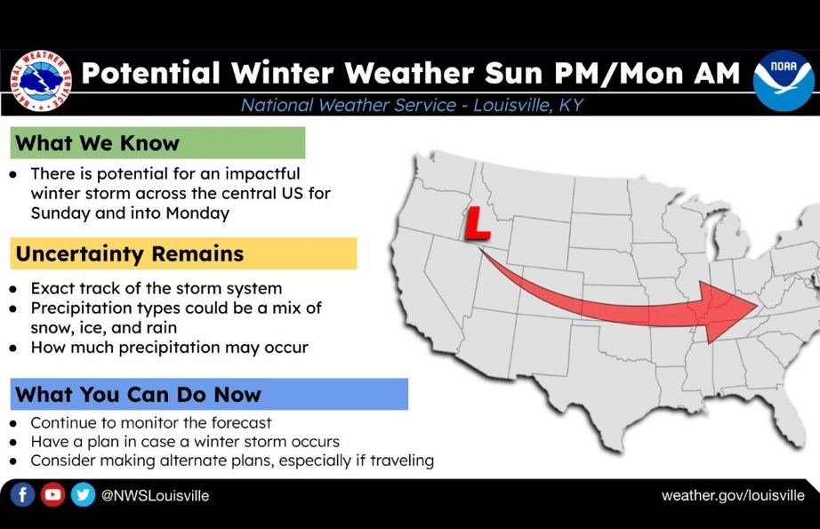 Simply stated, if the low pressure tracks farther south, our precipitation will fall as mostly all snow. If it tracks near us in southern Kentucky, we will see more of a sleet, freezing rain and snow.